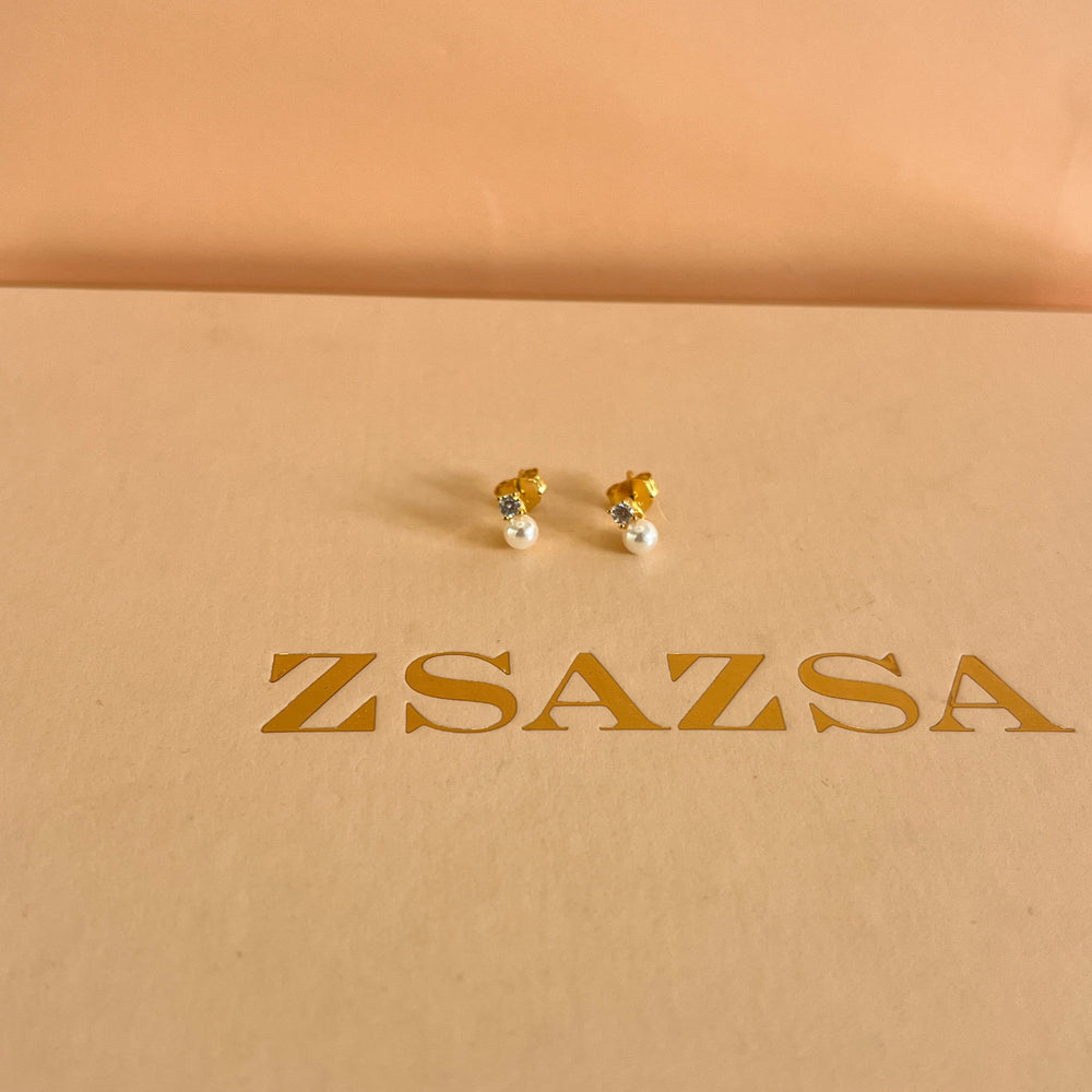 These sterling silver 925 stud earrings blend timeless elegance with subtle sparkle. Featuring delicate simulated pearls paired with shimmering zirconia, they add a refined touch to any outfit. Comfortable for all-day wear, these dainty earrings offer a graceful accessory to brighten your everyday look.